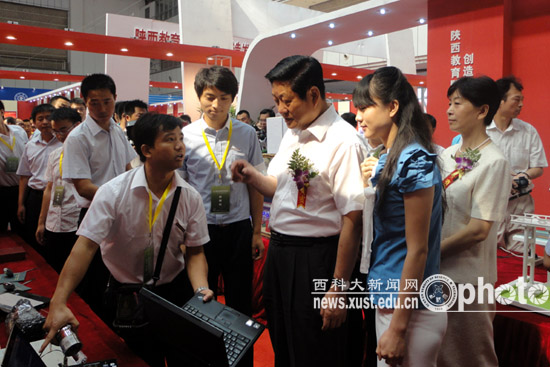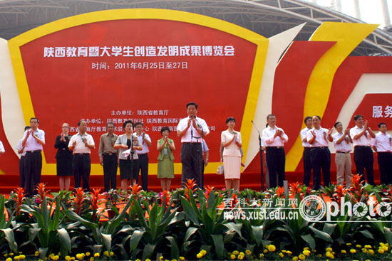 “陕西教育暨大学生创造发明成果博览会” 于25日至27日在西安曲江国际会展中心举行。25日上午,陕西省委副书记、省长赵正永宣布博览会开幕,省委副书记、省委教育工委书记王侠致辞,副省长朱静芝主持开幕式。省委教育工委副书记、省教育厅厅长杨希文、西北大学校长方光华在开幕式上分别致辞。省市教育主管部门和有关部门领导出席开幕式。我校校长苏三庆、党委副书记甘安生及全省高校负责人和代表参加了开幕式。